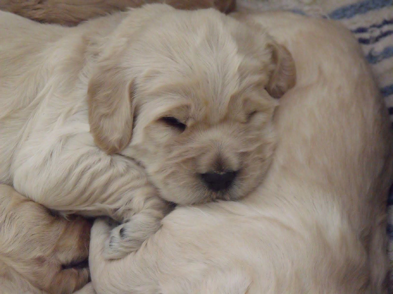 The pups are getting tired of being in their corral! The minute they see one of us or one of the big dogs, they cry to come out and play. I don't mind at all because the more exercise and playtime they get with us and the big dogs, the more they are socialized and the better they sleep!
